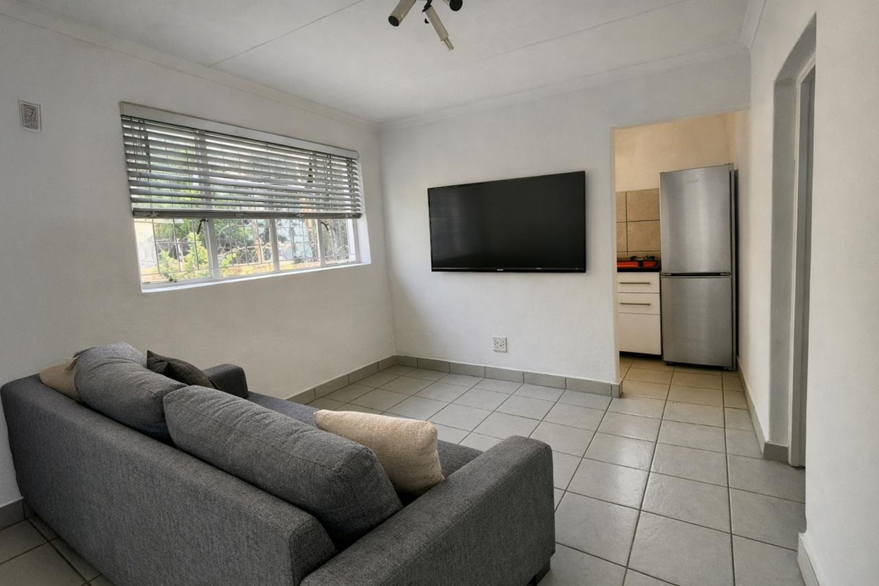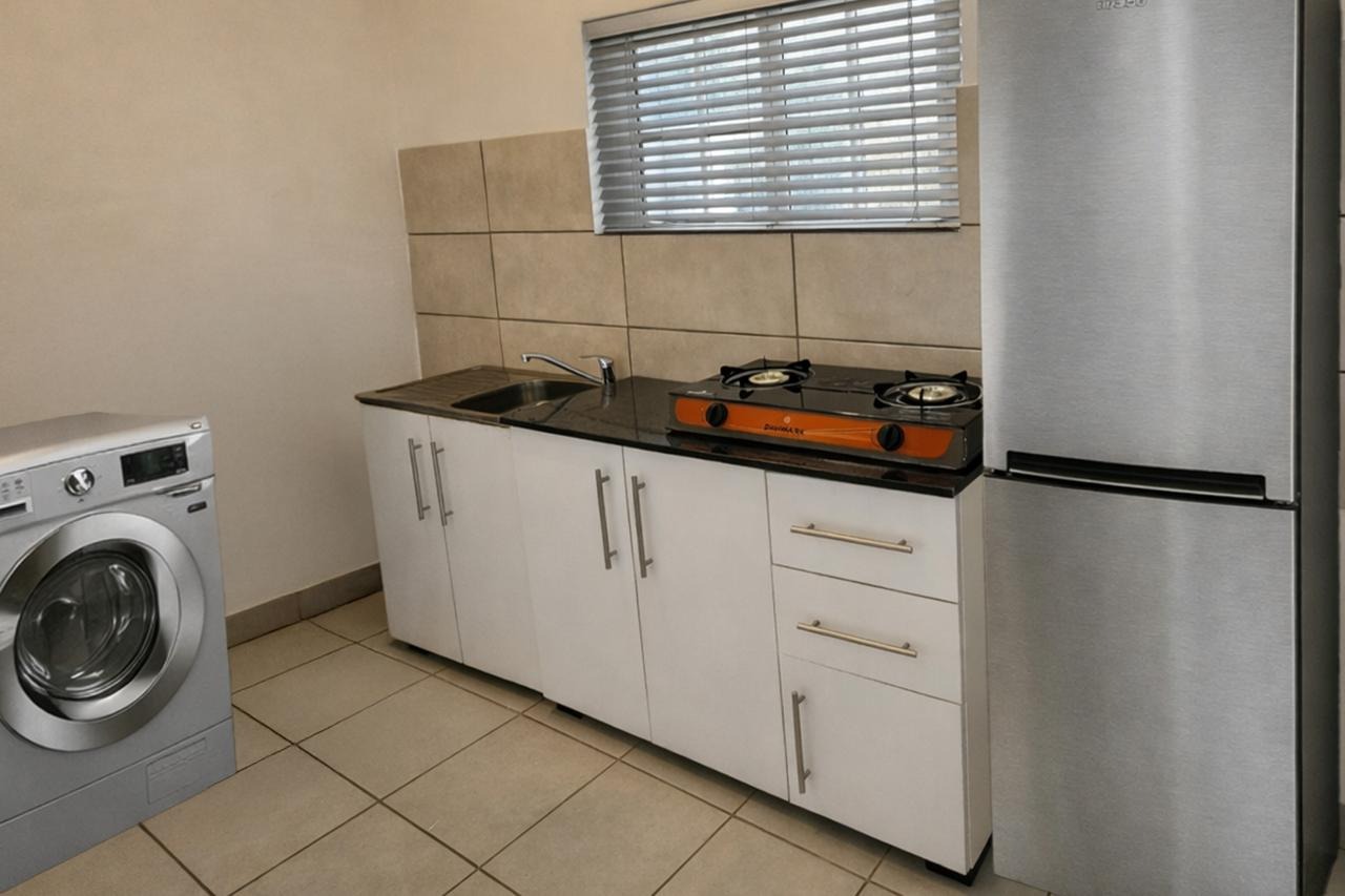 Discover this modern 1-bedroom, 1-bathroom rental unit located in the desirable Sandringham suburb of Johannesburg. Designed for comfortable living, the property features a compact, open-plan layout that seamlessly integrates a lounge and a well-appointed kitchen with a portable gas Hob, complemented by white cabinetry and tiled floors. The bedroom offers a neutral aesthetic with a built-in wardrobe and practical tiled flooring, ensuring ample storage and easy maintenance.