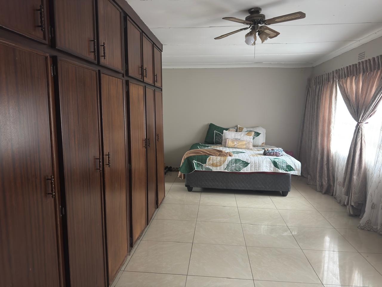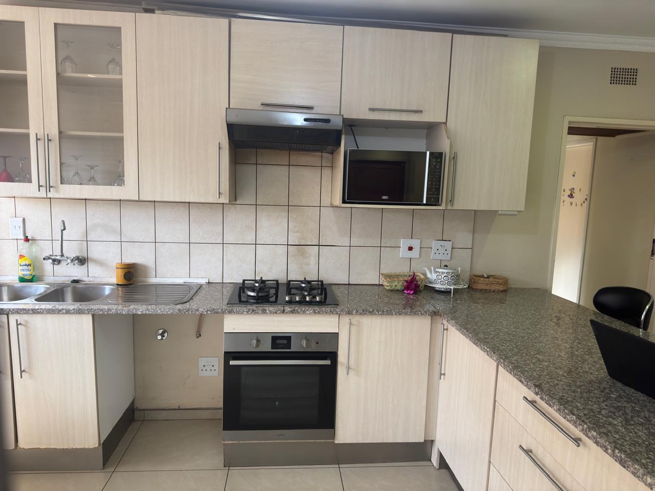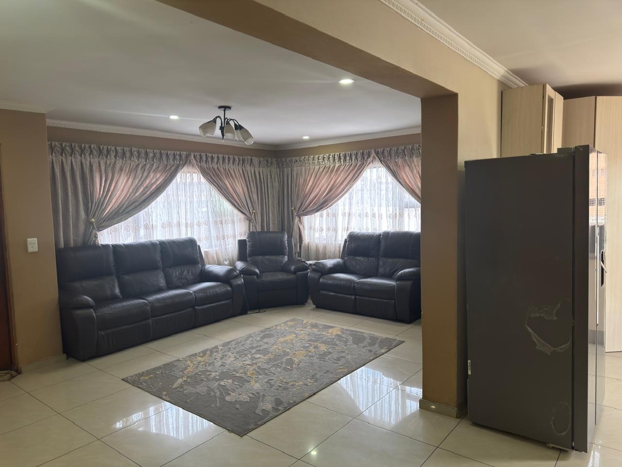 All bedrooms are fitted with built-in cupboards, providing ample storage. The home features a spacious open-plan layout that seamlessly integrates the living, dining, and kitchen areas, creating a welcoming and functional flow.