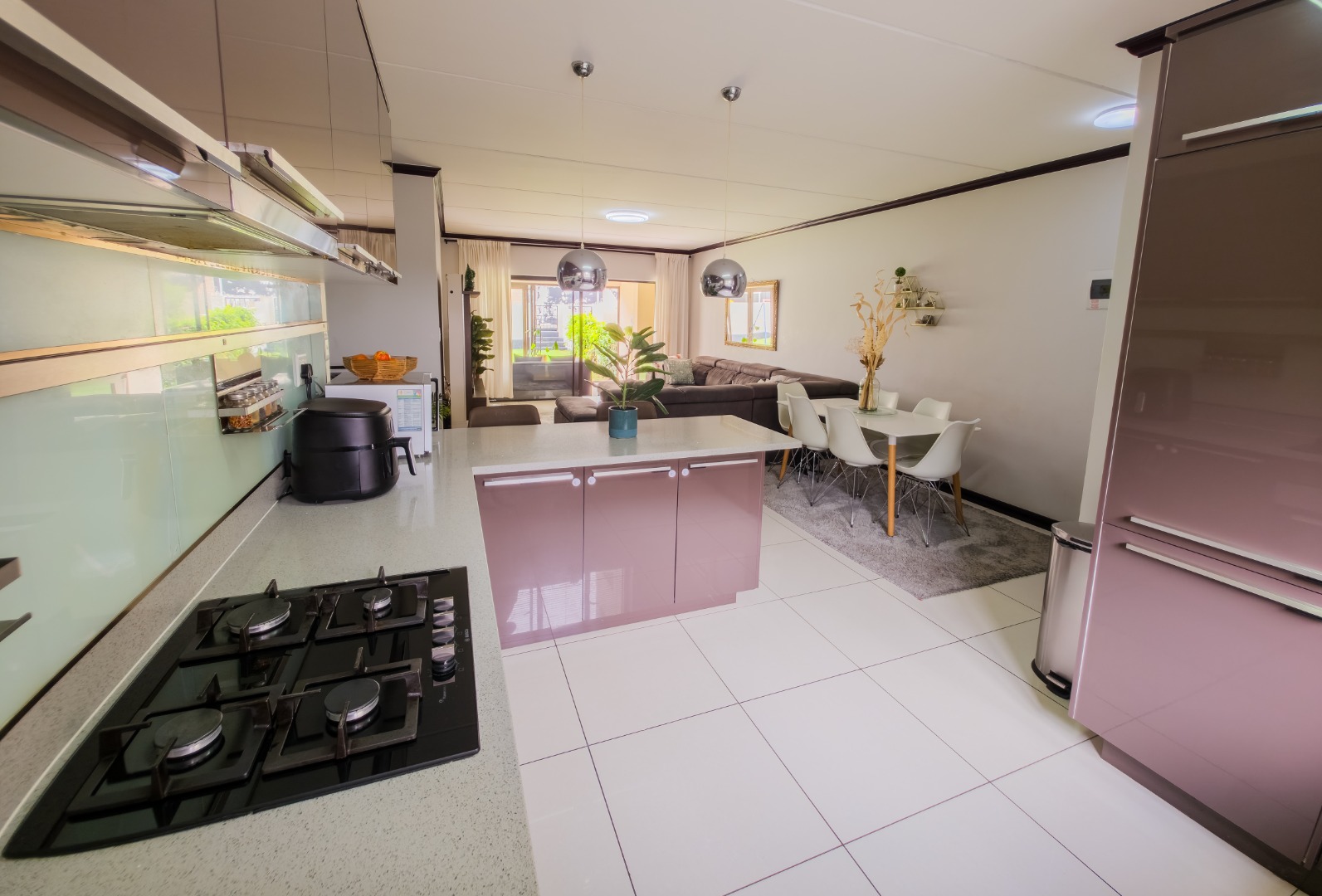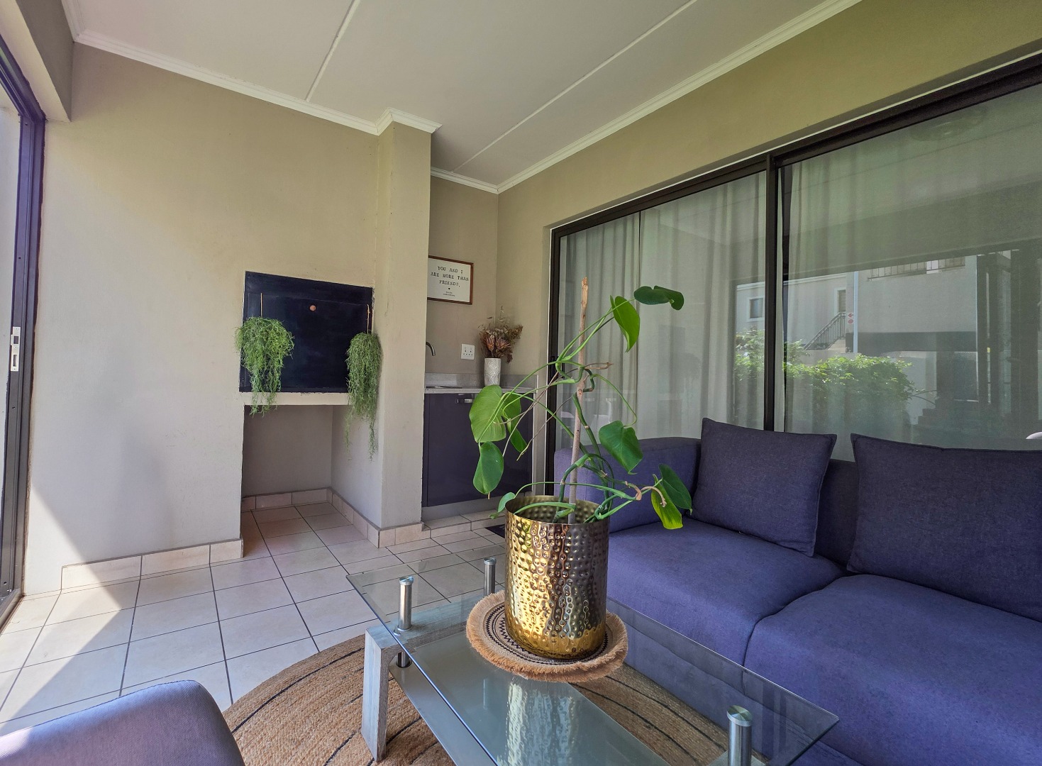 The heart of this home features a fully equipped kitchen, complete with a gas stove, catering to all culinary needs. Adjacent to this, you will find a comfortable living area and a dedicated dining room, providing ample space for relaxation and entertaining. A standout feature is the enclosed patio, perfect for year-round enjoyment, which includes a built-in braai and sink – ideal for social gatherings. The property also boasts a private 100sqm garden, with the option to include a garden shed, offering a serene outdoor retreat.