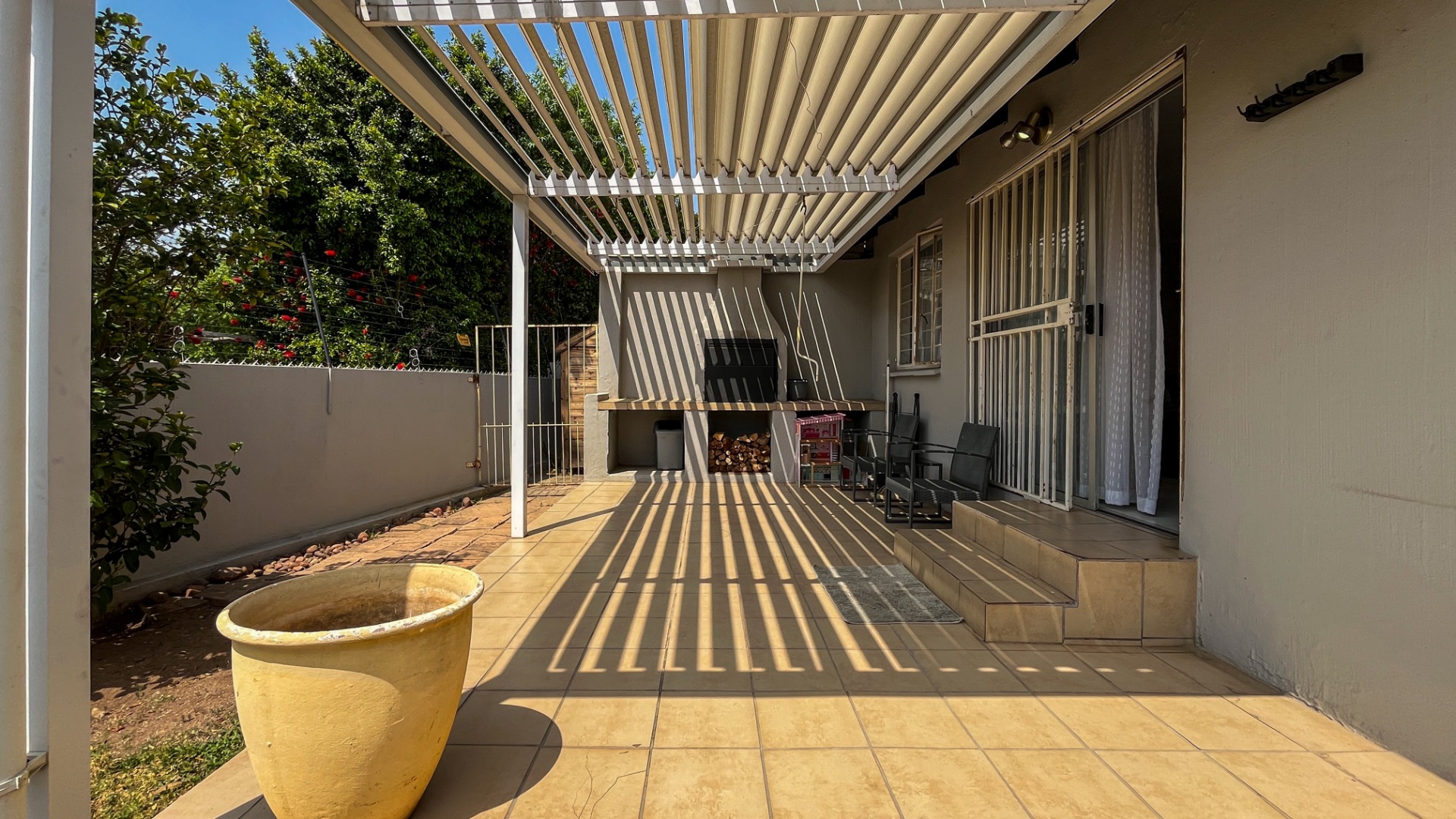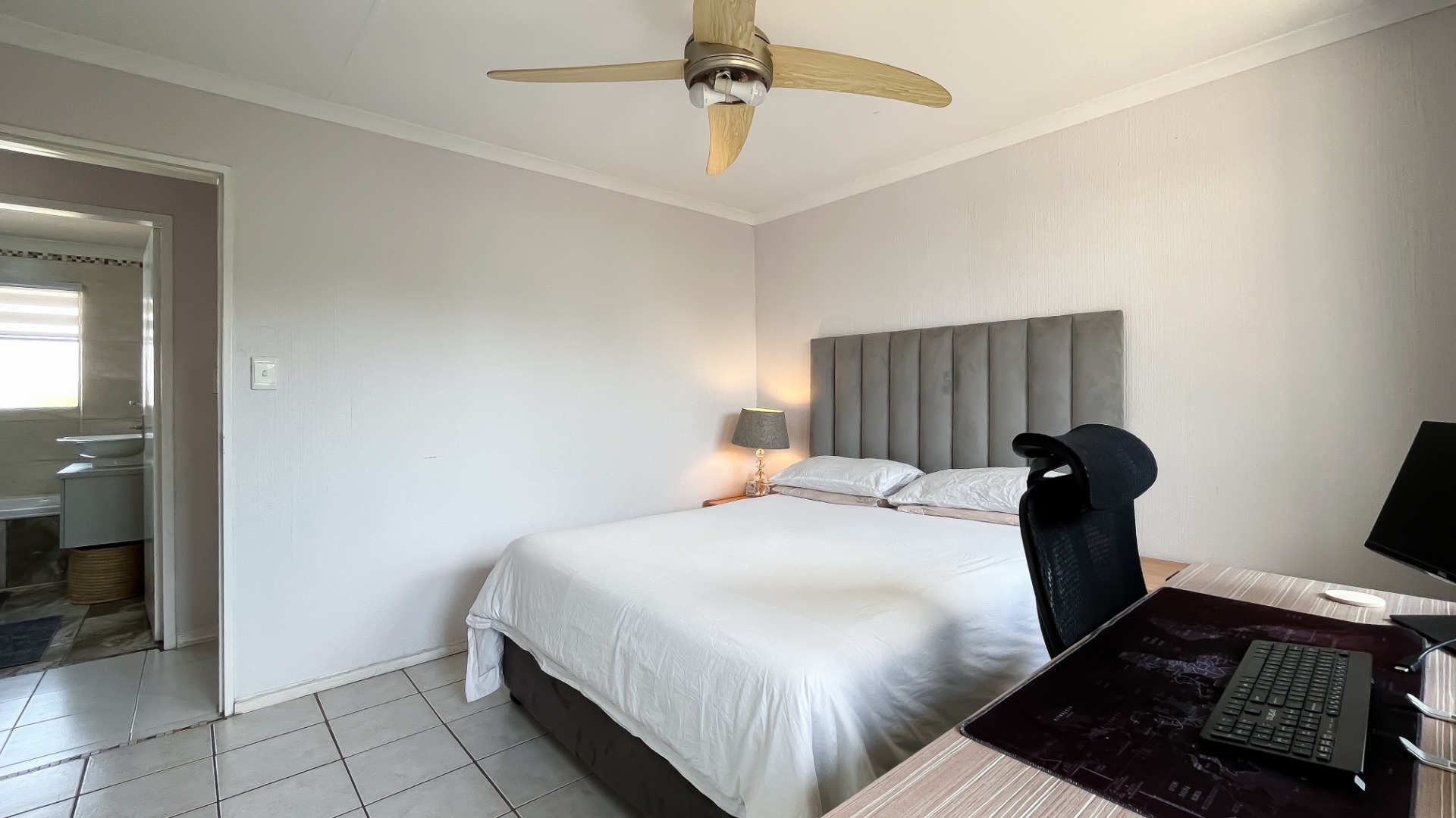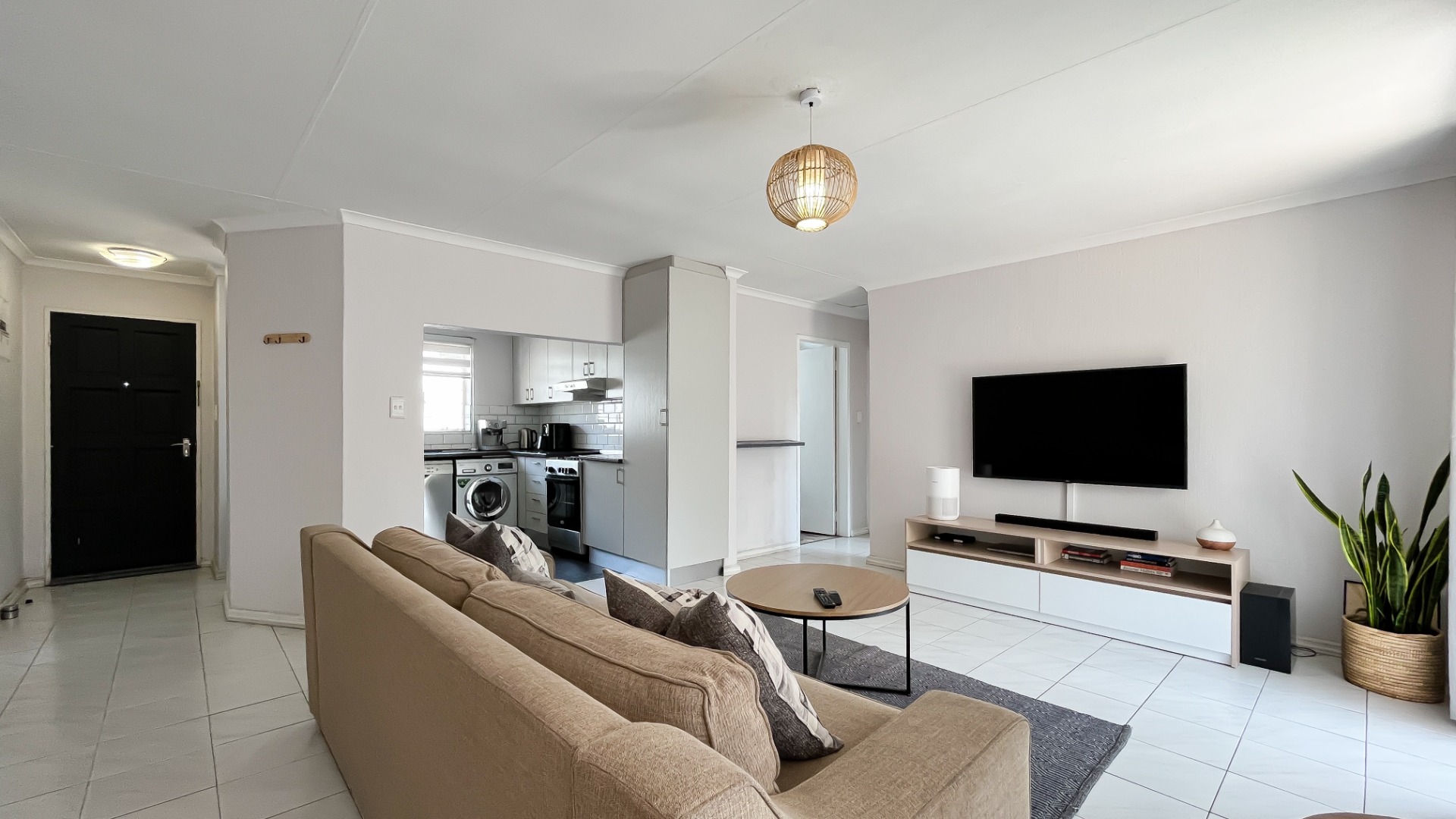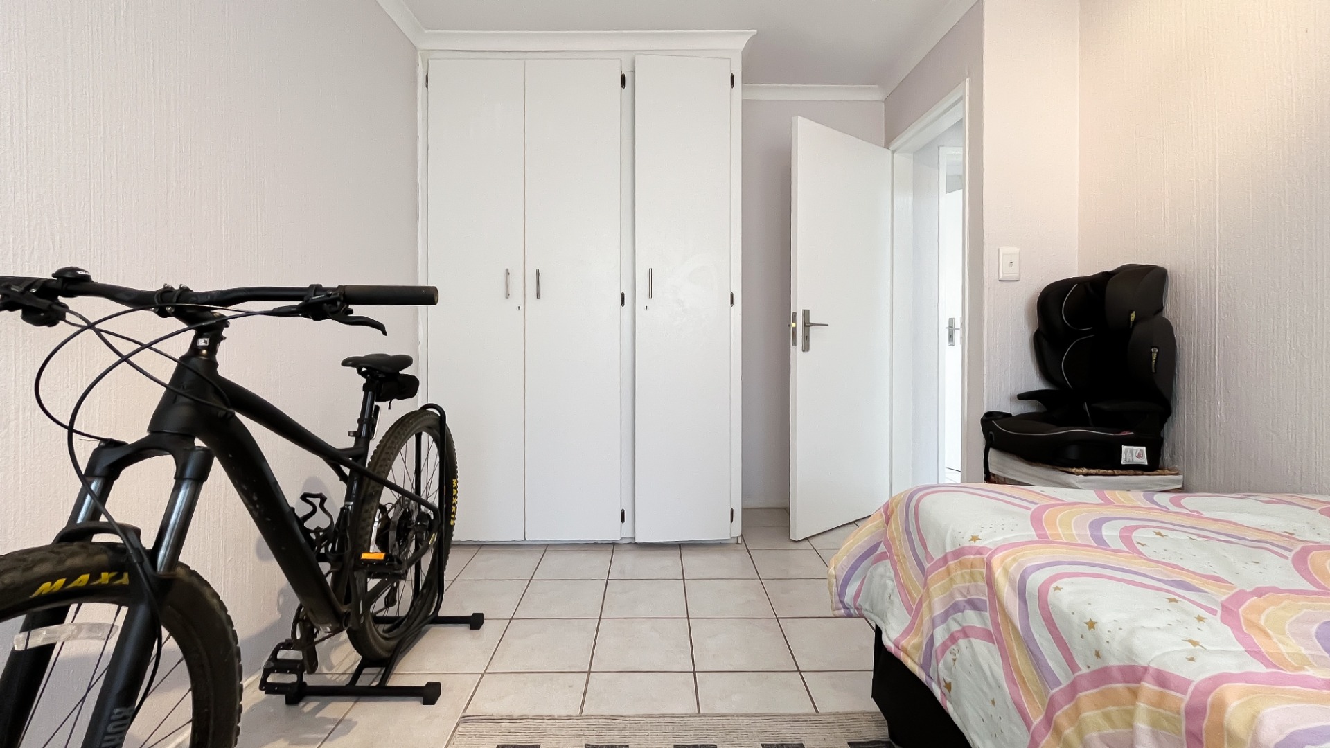 This 83 sqm unit provides two comfortable bedrooms and a well-appointed bathroom, catering to a small family or professionals. Security is paramount, with robust security gates on doors and burglar bars on windows, offering peace of mind within this suburban complex setting. Two dedicated parking spaces further enhance convenience.