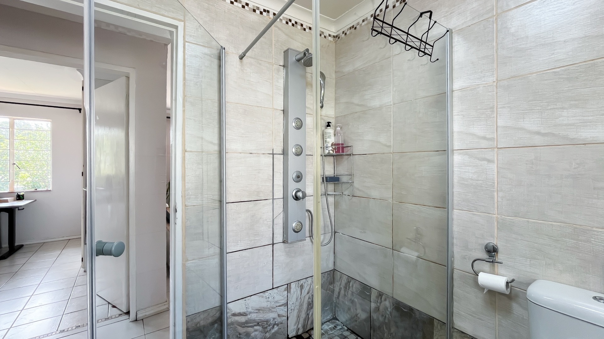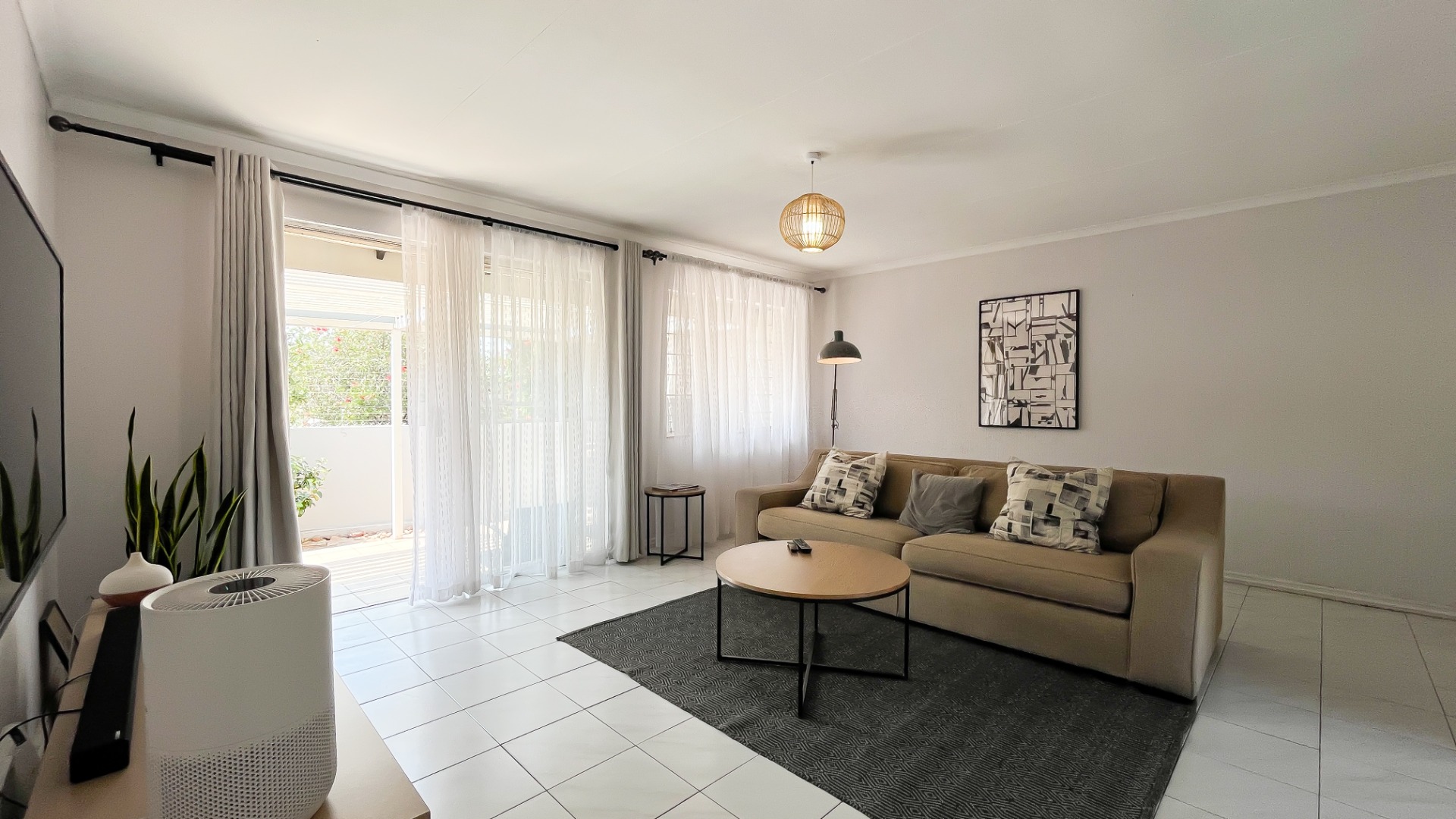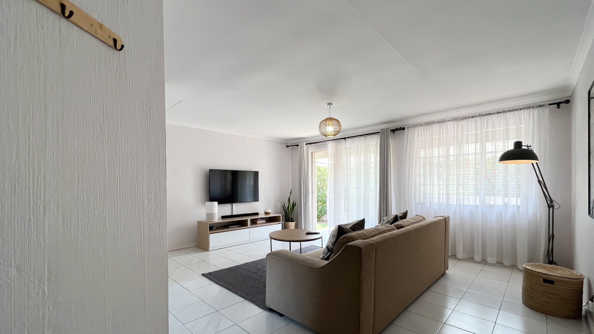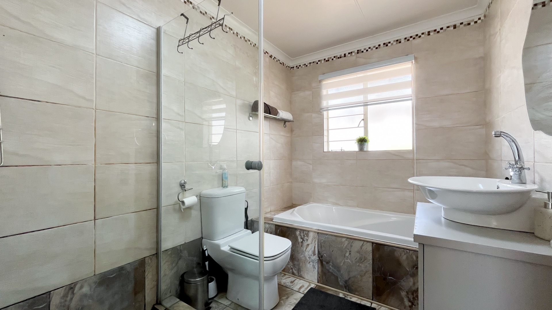 This 83 sqm unit provides two comfortable bedrooms and a well-appointed bathroom, catering to a small family or professionals. Security is paramount, with robust security gates on doors and burglar bars on windows, offering peace of mind within this suburban complex setting. Two dedicated parking spaces further enhance convenience.