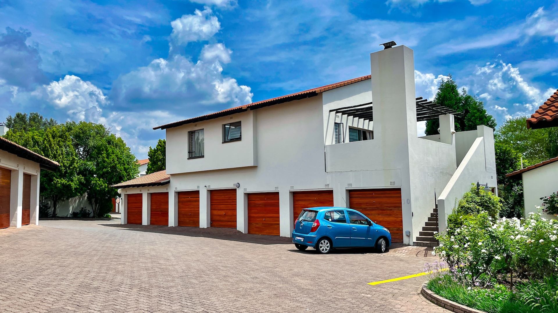 Step outside to a spacious, paved outdoor patio, perfect for entertaining. This area includes a built-in braai and a charming wooden pergola, providing an excellent spot for al fresco dining and relaxation. With one dedicated garage and an additional parking space, convenience is assured for residents.
