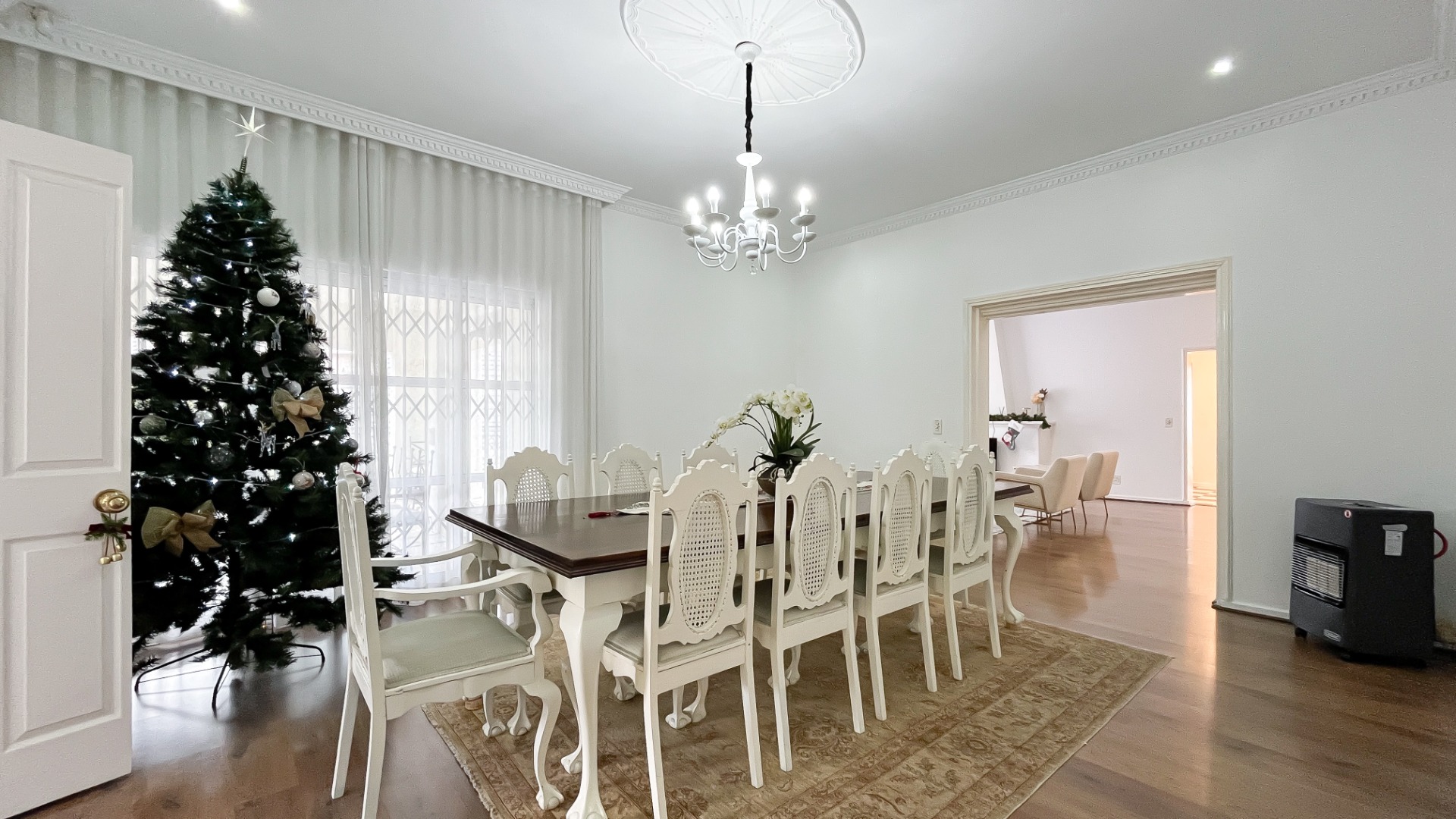 Security is comprehensively addressed with an alarm system, electric fencing, burglar bars, a security gate, and an intercom system. Modern conveniences such as fibre connectivity and a battery inverter are also present, ensuring uninterrupted comfort and connectivity. This property represents a refined opportunity for discerning homeowners seeking elegance and functionality in a prime location.