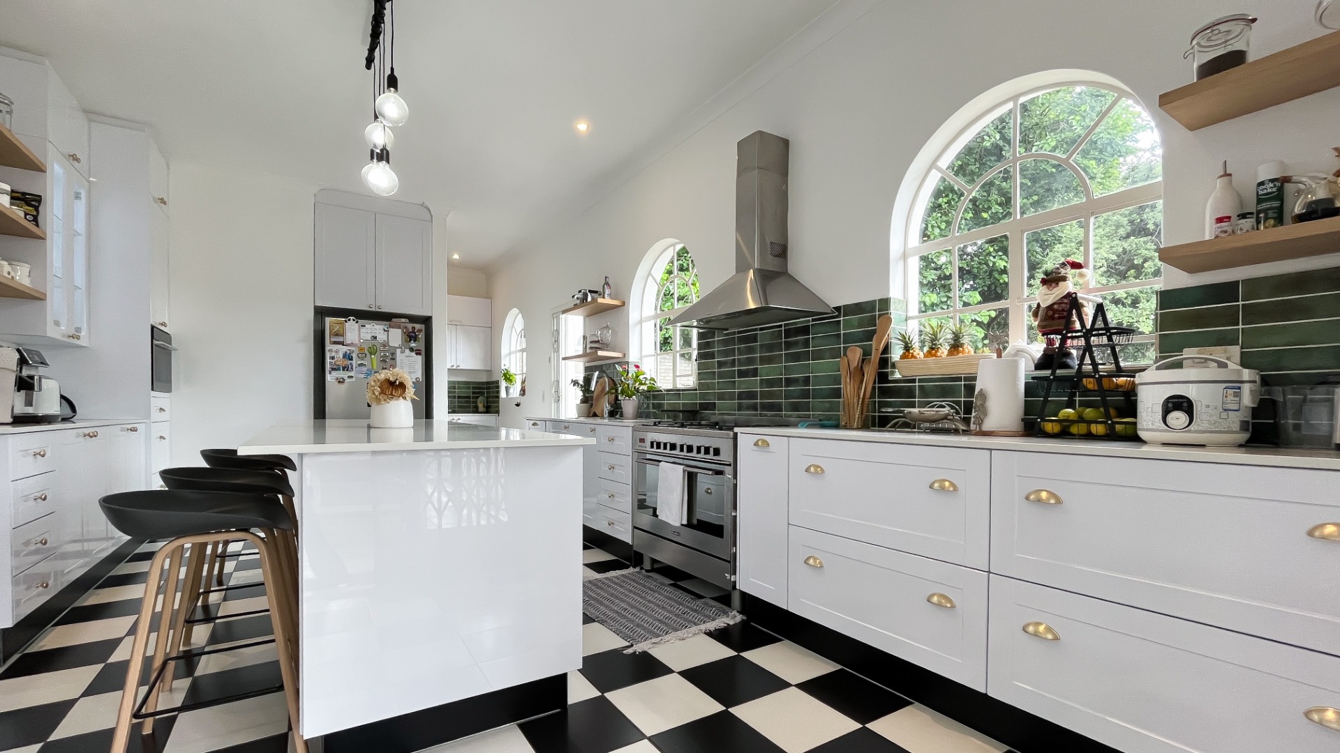 Accommodation comprises four well-proportioned bedrooms and two and a half bathrooms, including a private en-suite. Outdoor amenities are equally impressive, featuring a private patio, a refreshing swimming pool, and a deck, all set within a well-maintained garden. Further enhancing the lifestyle offering are a dedicated braai room and a built-in bar. Practical considerations include two garages and two additional parking spaces.