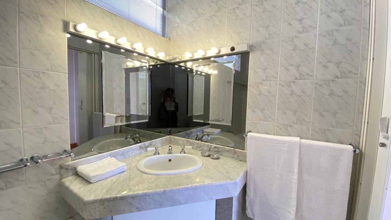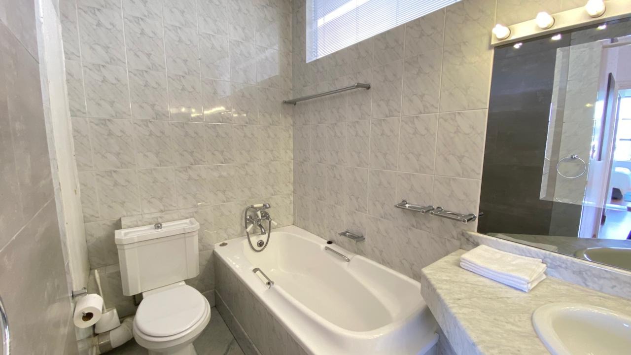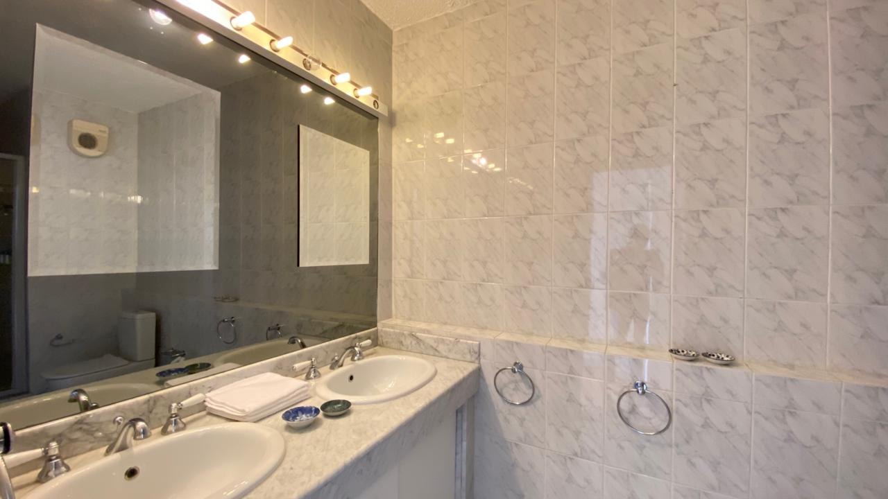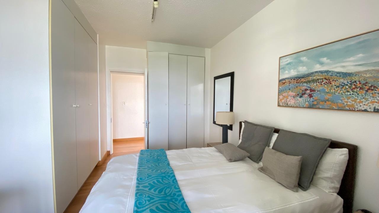 The main bedroom features an en-suite bathroom and opens onto a generously sized private balcony, offering a peaceful retreat with fresh air and elevated views. The second bedroom is equally well appointed, serviced by a sleek modern bathroom.